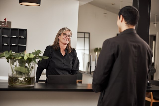 “Jeg blev ansat i stillingen som booking- og restaurantchef. Jeg kom ikke fra denne branche, og jeg ser derfor tit tingene med gæsternes øjne, og det tror jeg, var vigtigt for vores ejere.”